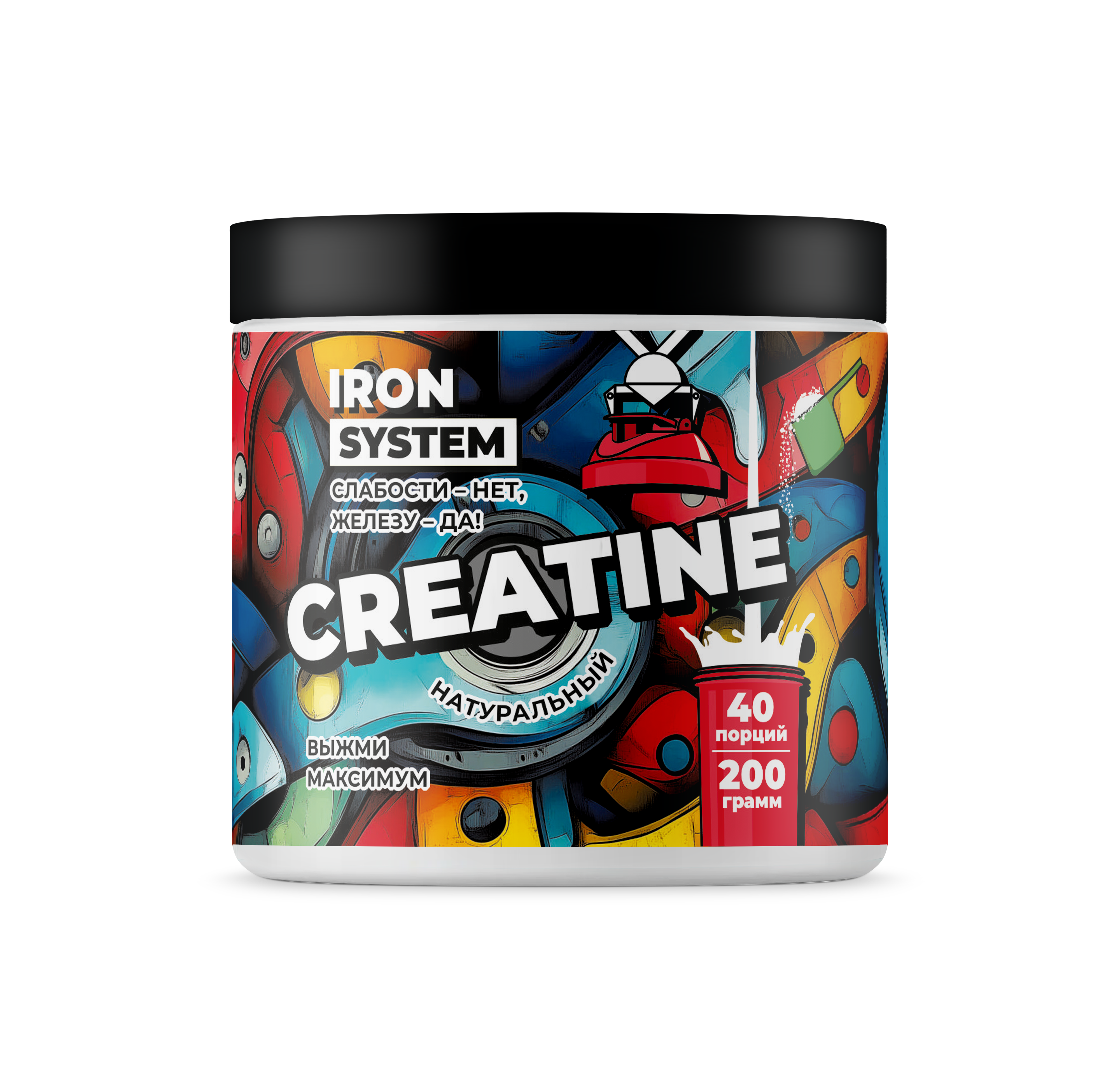 Креатин моногидрат 200 г (без вкуса) IRON SYSTEM — это must-have добавка в рационе тех, кто стремится к силе, выносливости и мощному прогрессу в зале. Только чистый микронизированный порошок без вкуса — никаких добавок, ароматизаторов и сахара. Только результат. Что внутри и зачем он нужен?