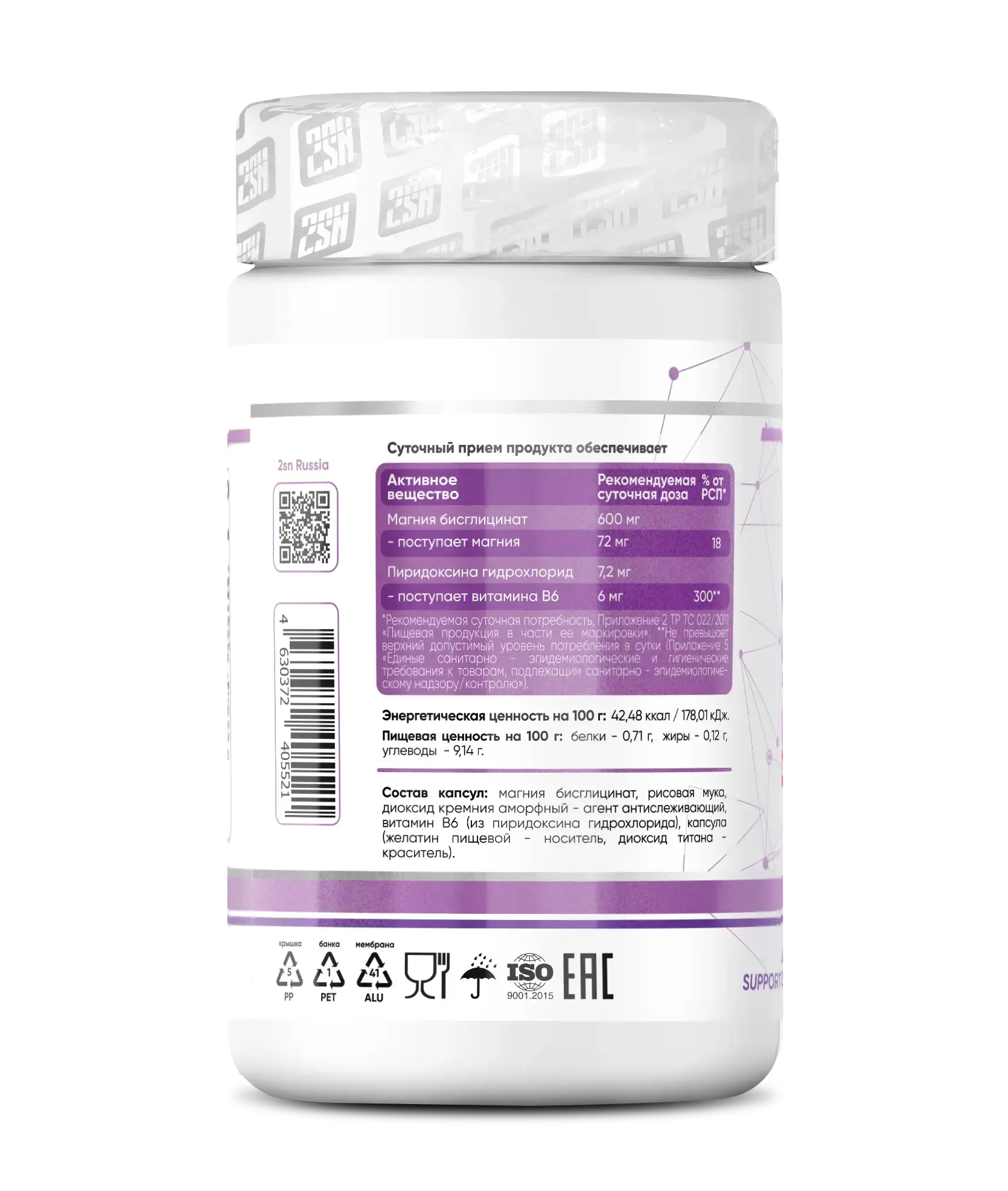 2SN Magnesium glycinate – это хелатная форма магния, усиленная аминокислотой глицином. Хелатный магний имеет самую высокую биодоступность для организма, с лёгкостью проходит гемато-энцефалический барьер и максимально эффективно усваивается организмом.
